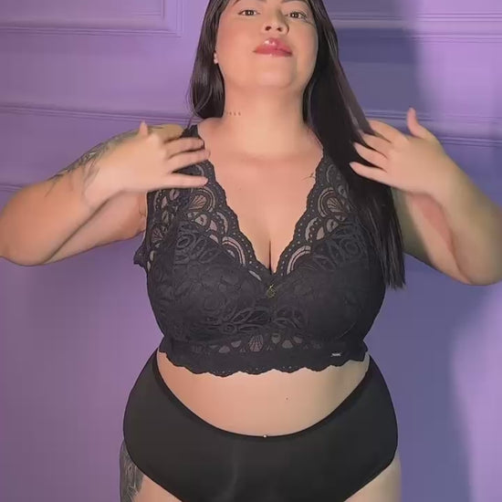 O Crooped Sissia Renda Plus Size é a peça perfeita para quem deseja uma lingerie ousada, romântica e confortável. Possui reguladores e aros banhados a ouro 24k., ele proporciona liberdade, leveza e um toque de sensualidade, ideal para usar sozinho ou como sobreposição estilosa. Feito em renda transparente com detalhes delicados, o crooped tem caimento macio e acompanha com suavidade o corpo plus size. Use com calças, saias, lingeries ou até como terceira peça para um look cheio de atitude. 🖤)